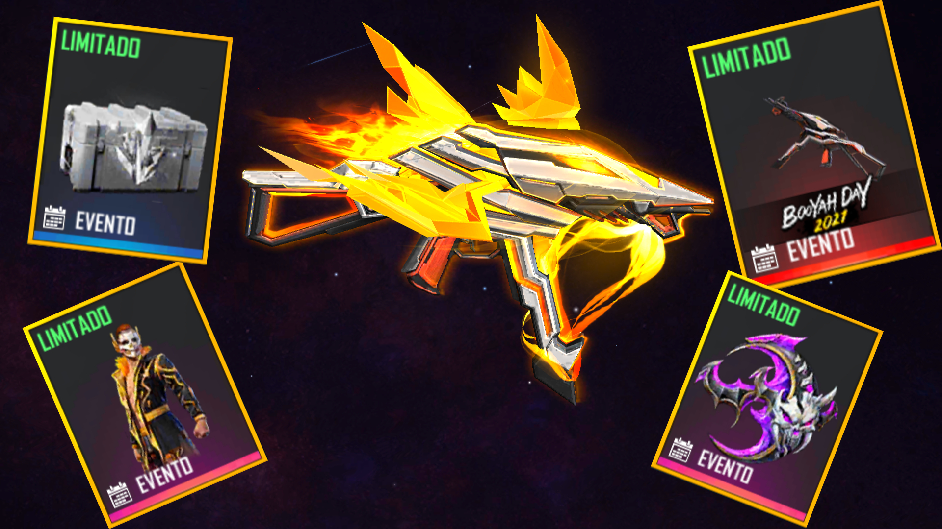 Chegando ao servidor brasileiro, a nova caixa com itens da temática booyah. Nesta caixa contém um pacote brabo que é o pacote Príncipe Caveira. Cada caixa custará apenas 30 diamantes, mas lembrando que é melhor esperar pelos descontos, que sempre chegam.